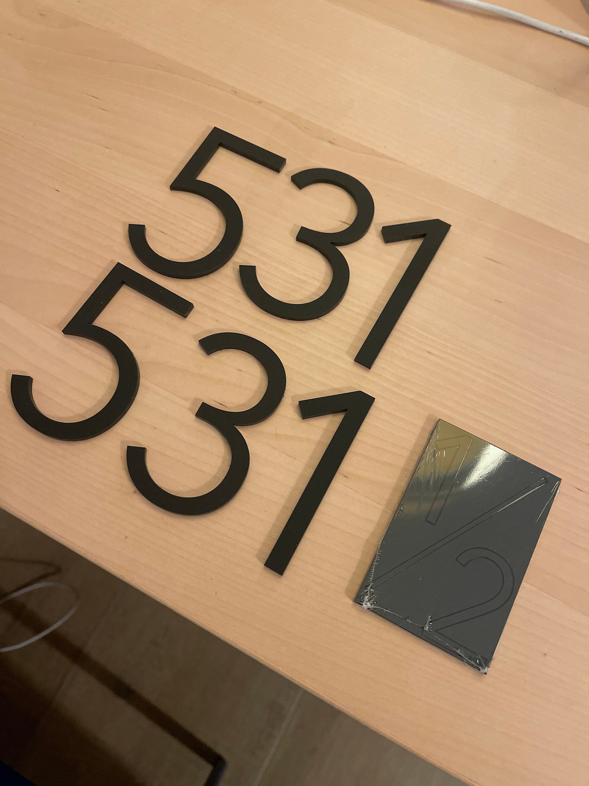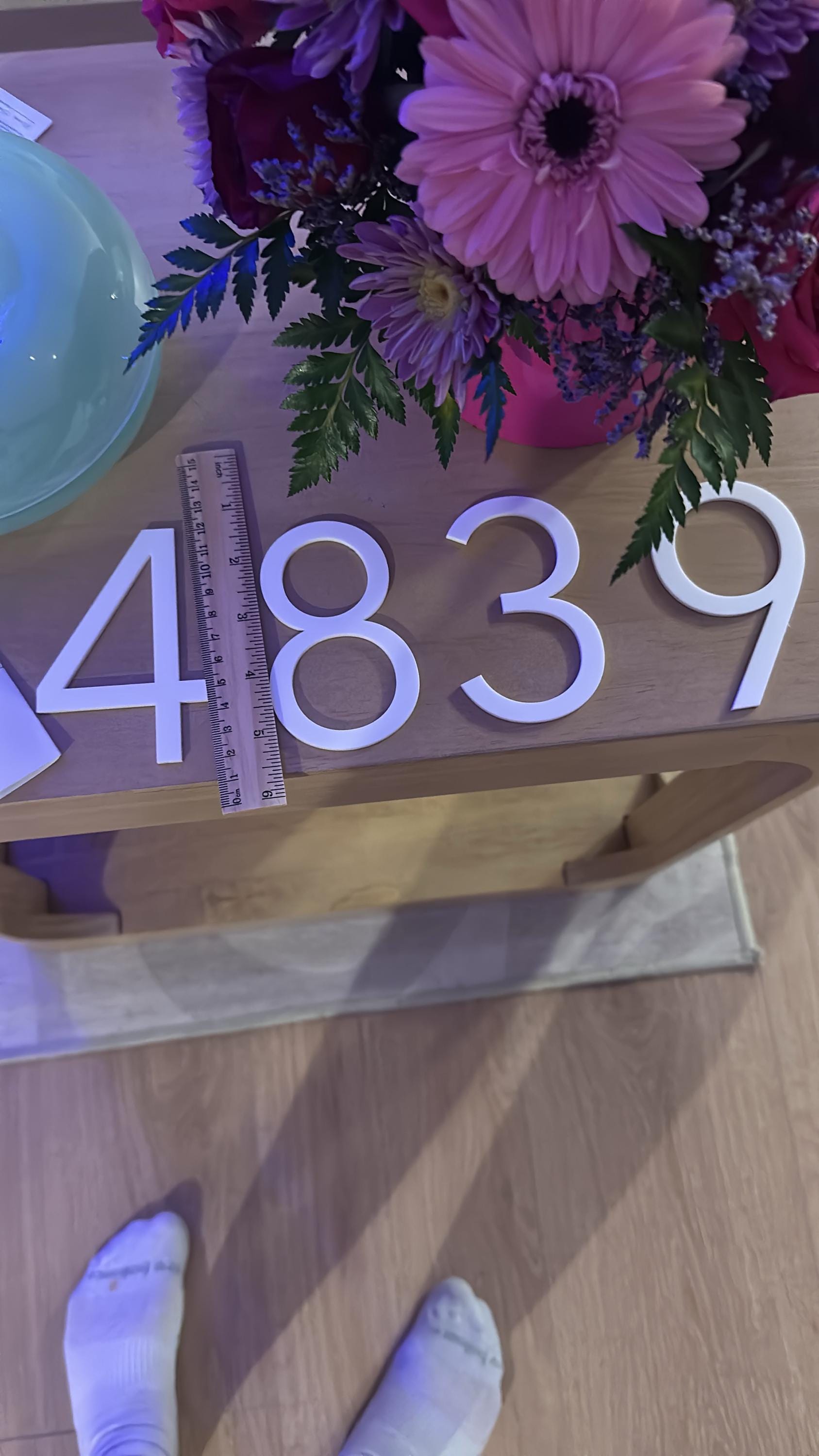 - Select black or white 1/8" thick acrylic numbers with a permanent adhesive on the backing.