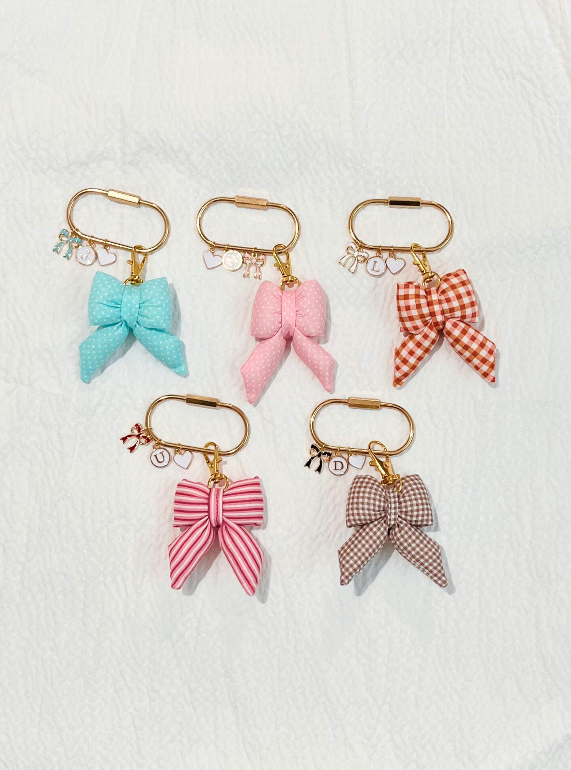 Add a stylish touch to your purse, backpack, or keys with our trendy bow bag keychains and aesthetic purse charms! Choose from a variety of bow colors and personalized initial charms — perfect for creating your own unique accessory.