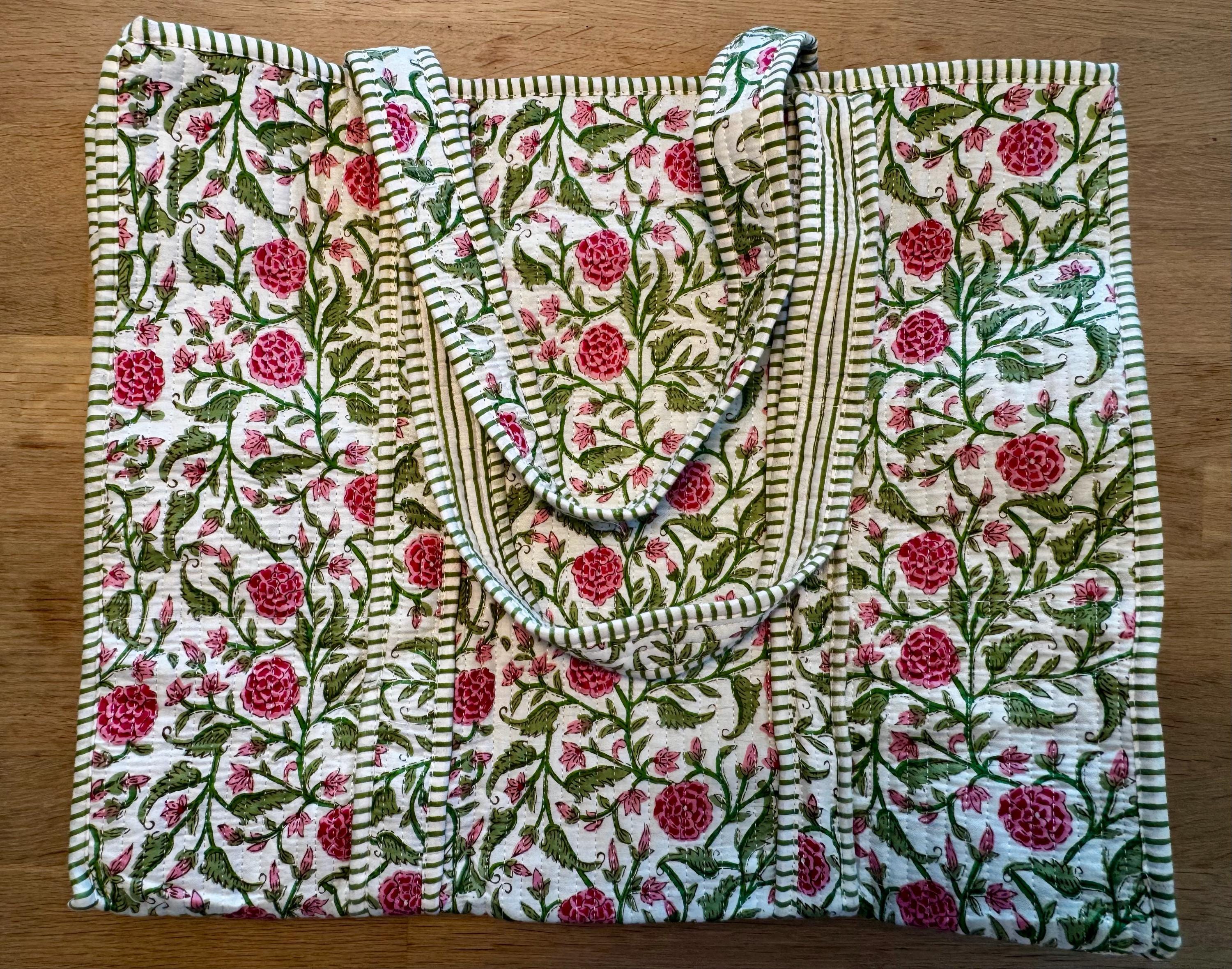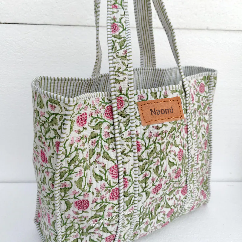 Gorgeous Prints of Hand Printed cotton are brought together to give an alternate to plastic bags usage.