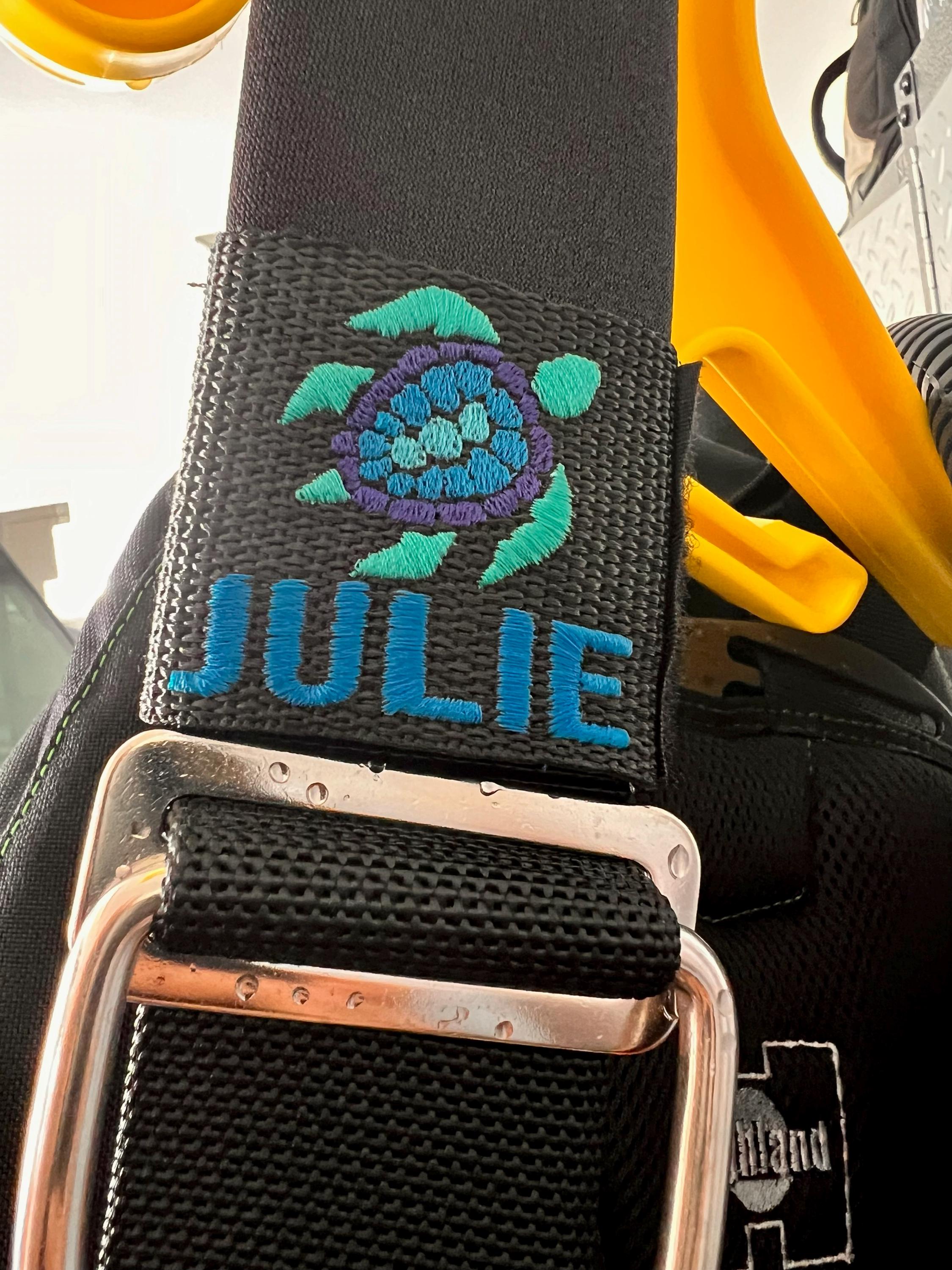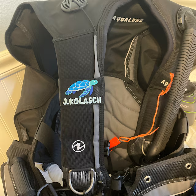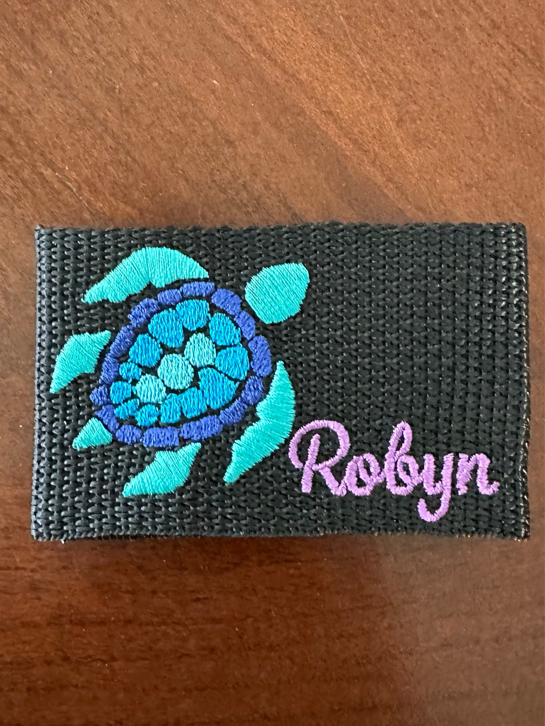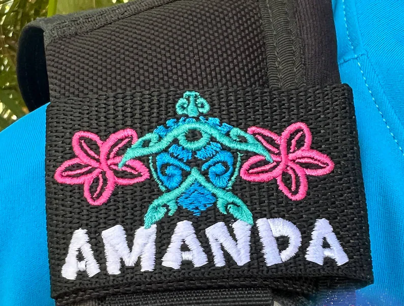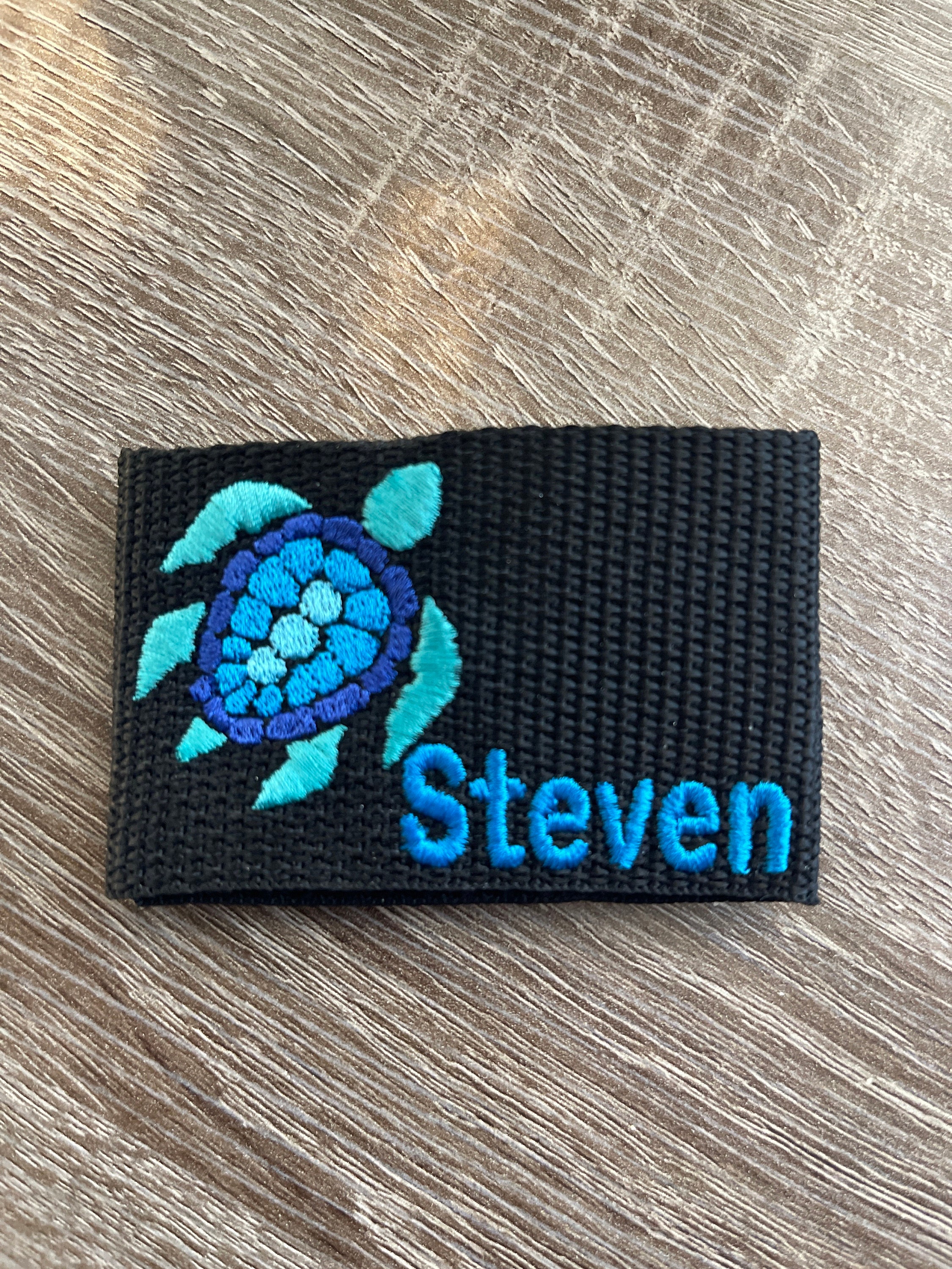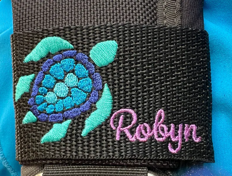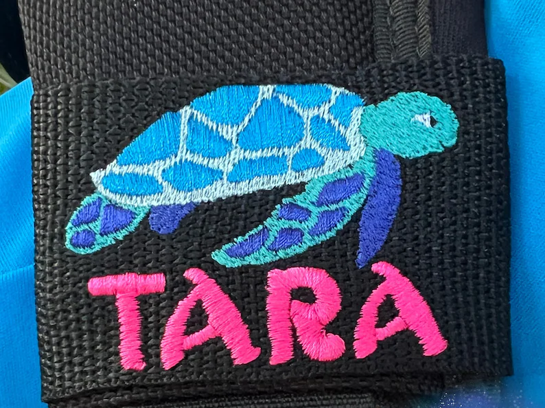 Looking for a unique and personalized way to label your BCD? Look no further than the Personalized Sea Turtle Embroidered BCD Tag, made right here on Maui, Hawaii! This high-quality tag features a fun and customizable sea turtle design and your name, or your favorite dive buddy’s name embroidered in your choice of font and thread color! Choose any colors you like for the turtle and the shell.