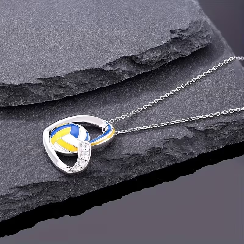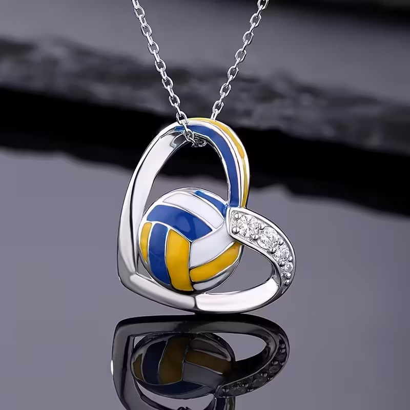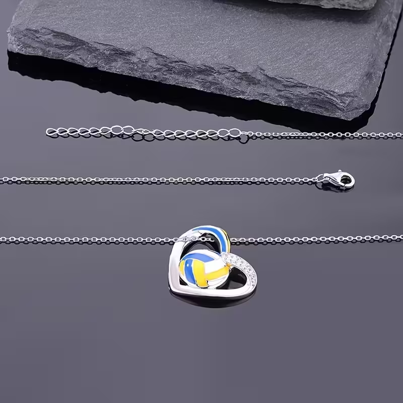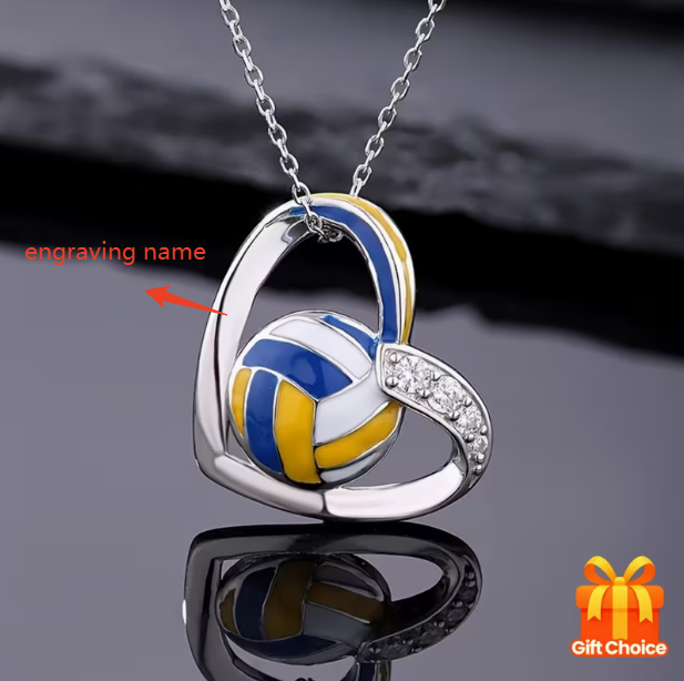 Show your love for the game with this charming silver volleyball heart-shaped pendant, a delightful way to express your passion for sports; This sports necklace with number is perfect for players and fans alike.