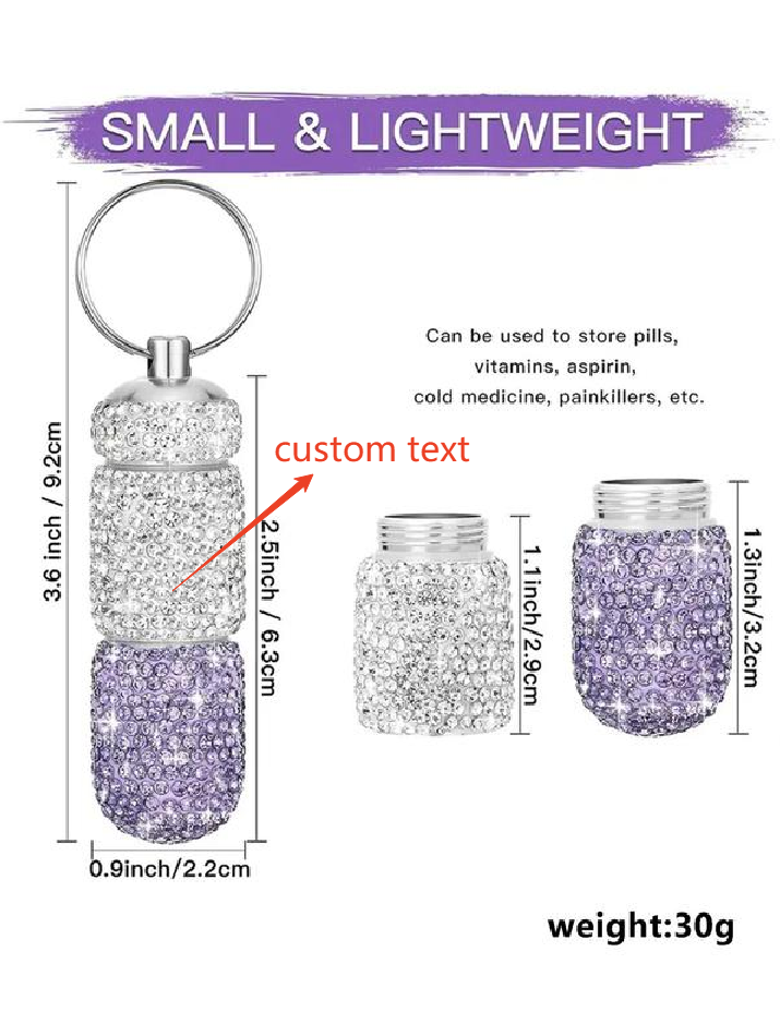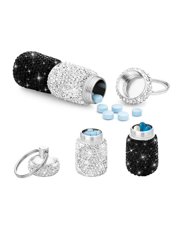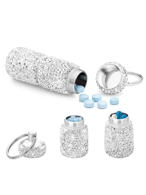 Rhinestone Embellishment: This unique pill box keychain is adorned with sparkling rhinestones, combining functionality with glamour for daily use accessories.