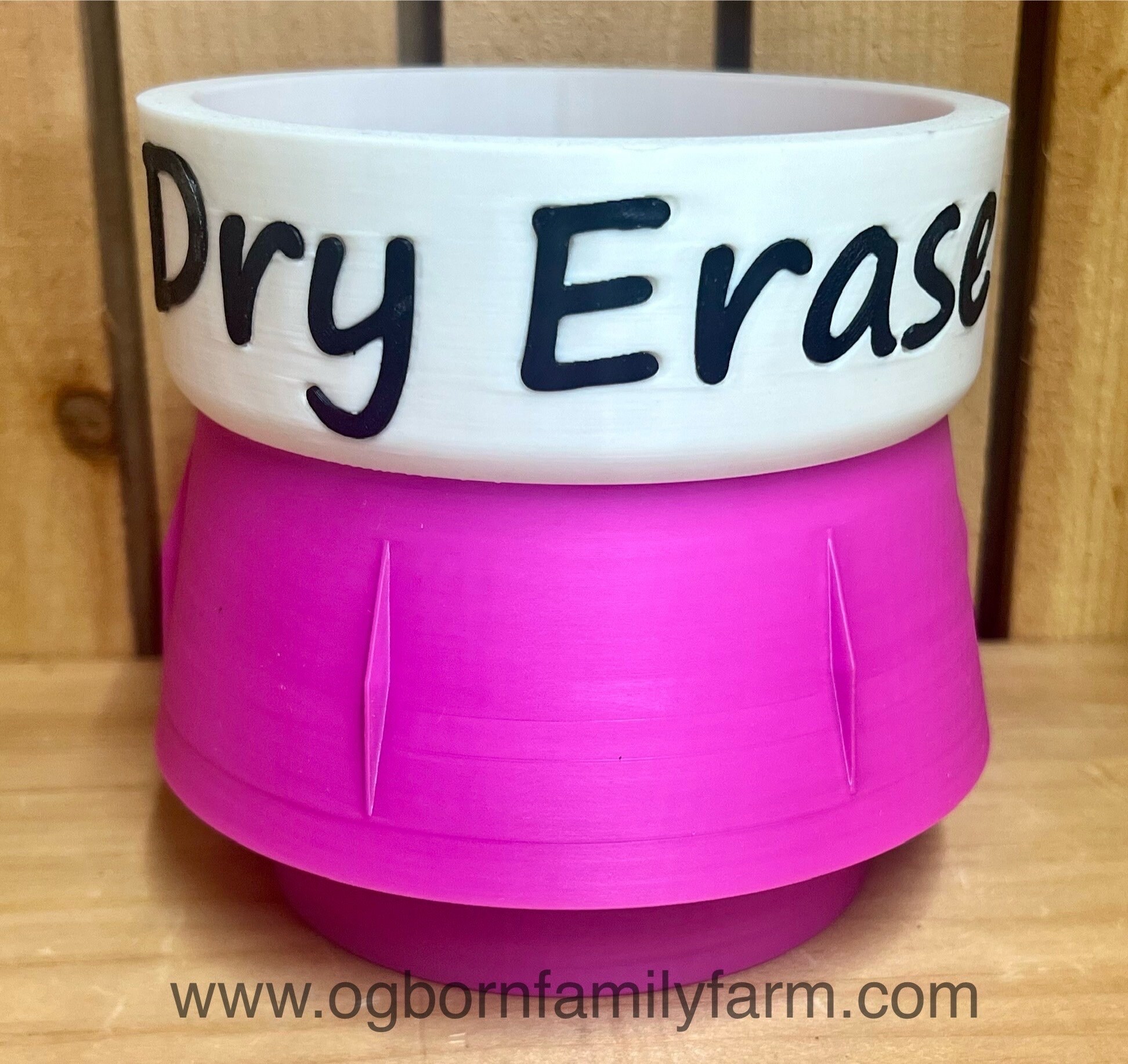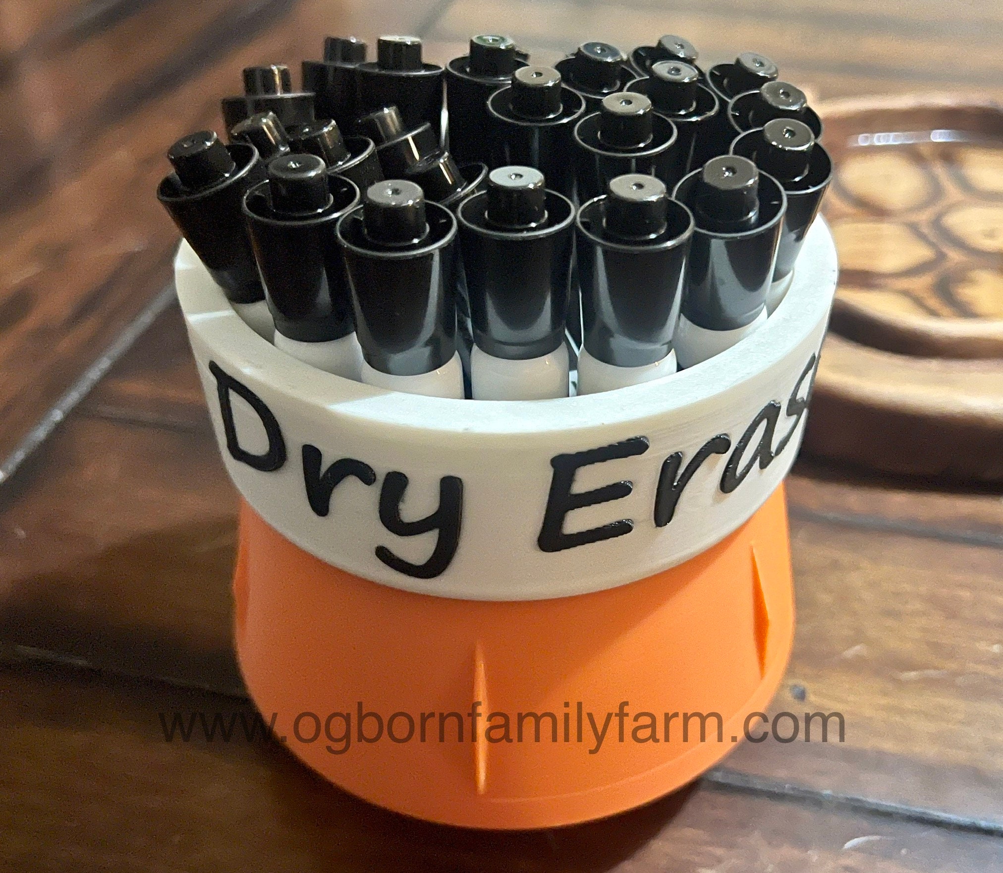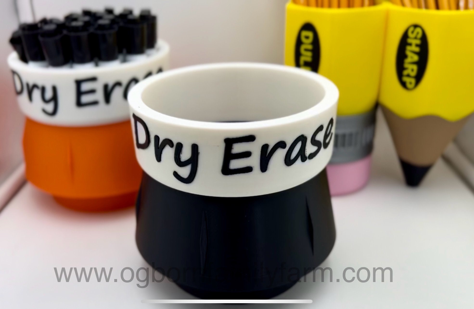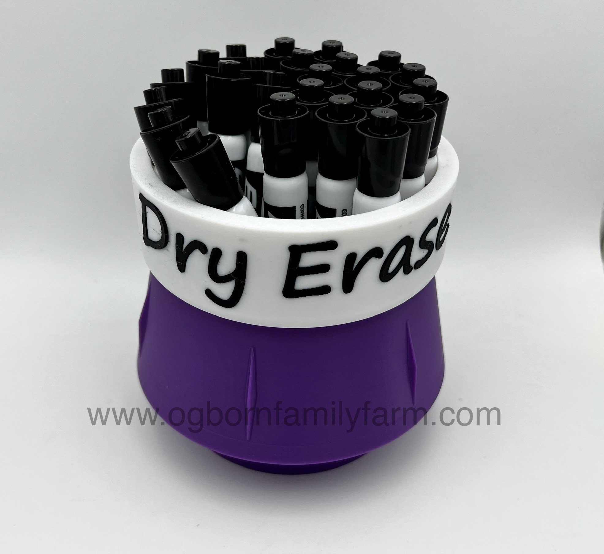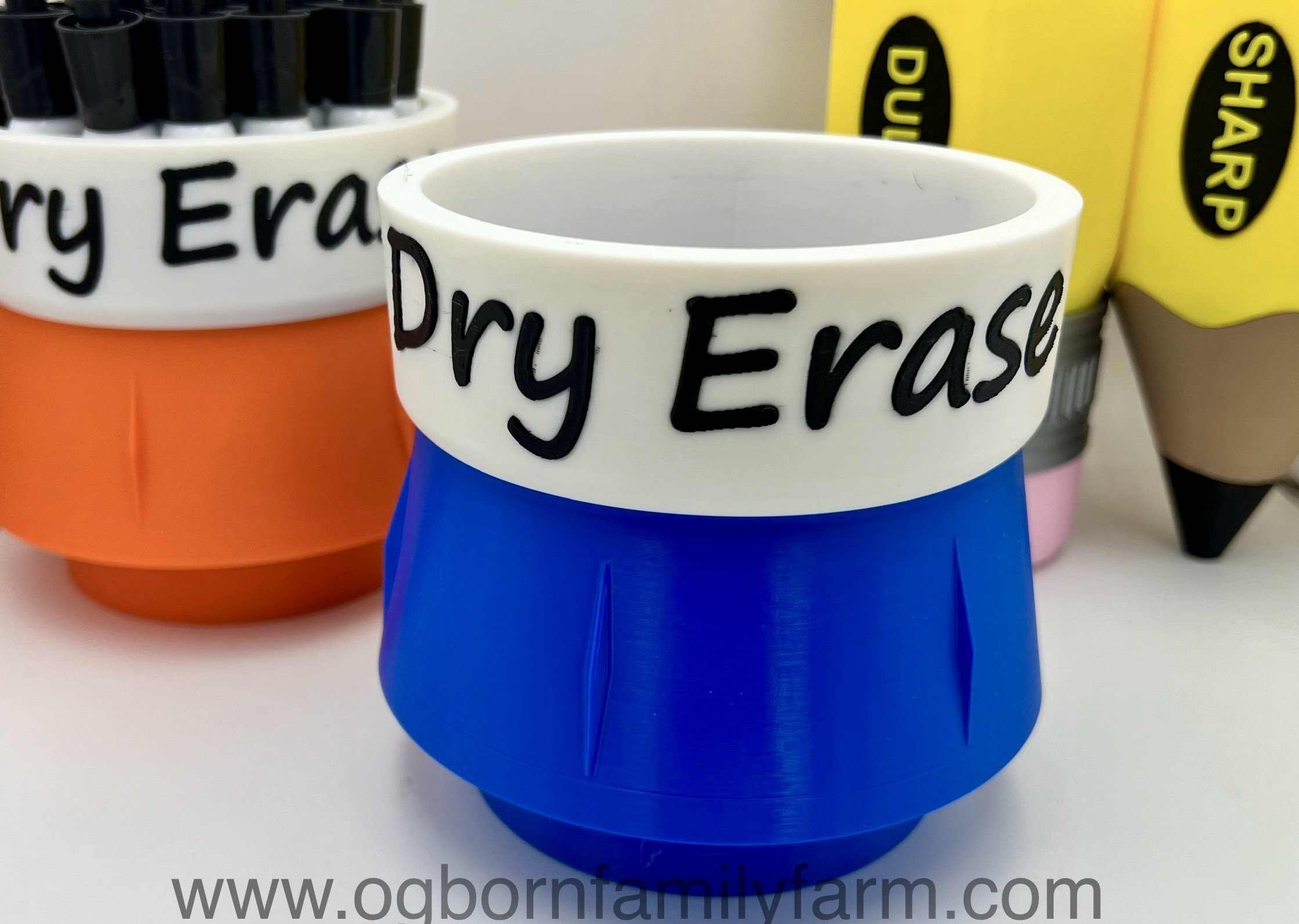 This fun and colorful Dry Erase Marker holder comes in at nearly 5.5" wide, 5.5" tall and a cup depth of 3.6". This marker holder is weighted with sand in the bottom section. Holds 24+ big markers. It is constructed of corn based 100% biodegradable PLA.