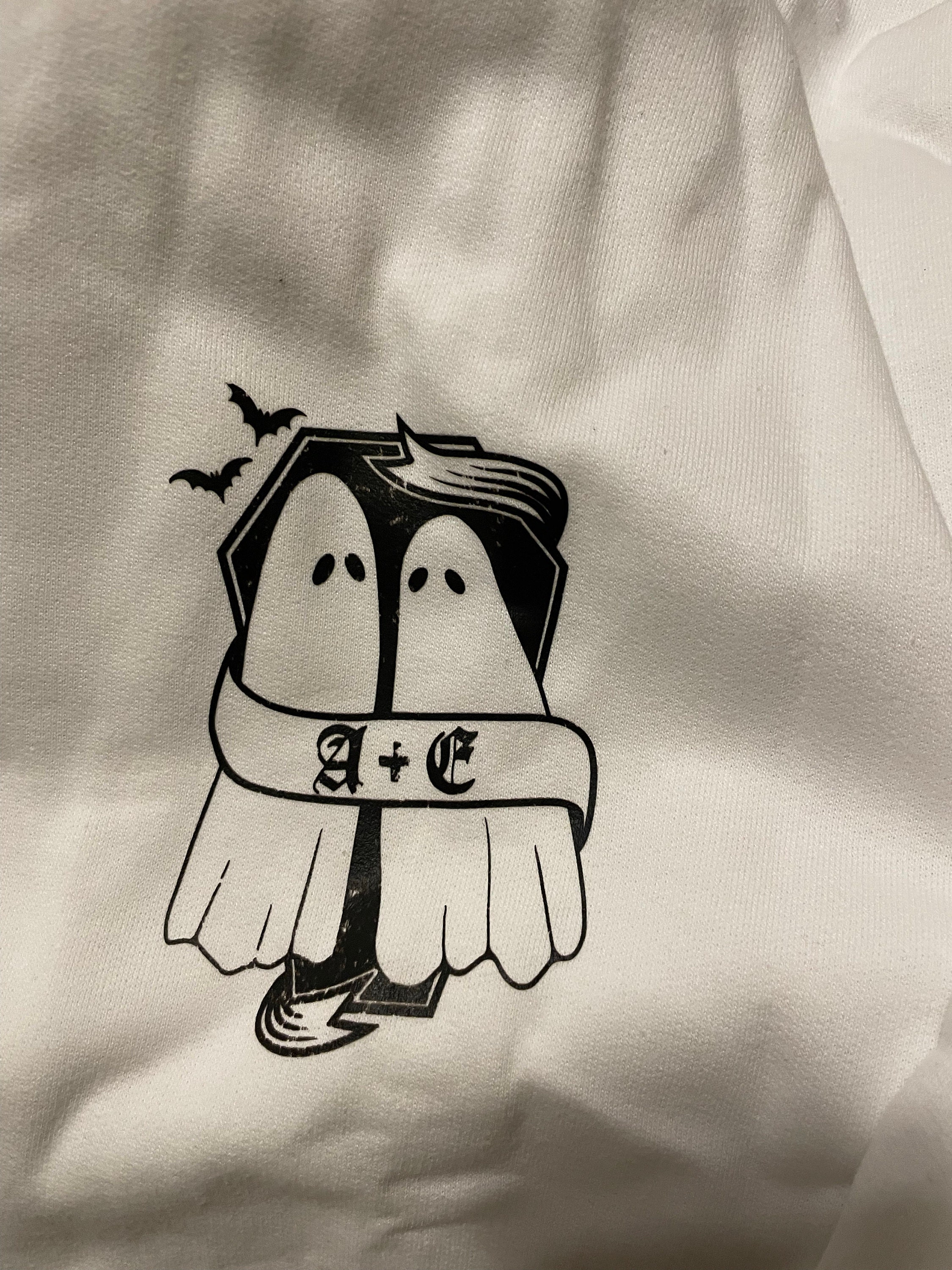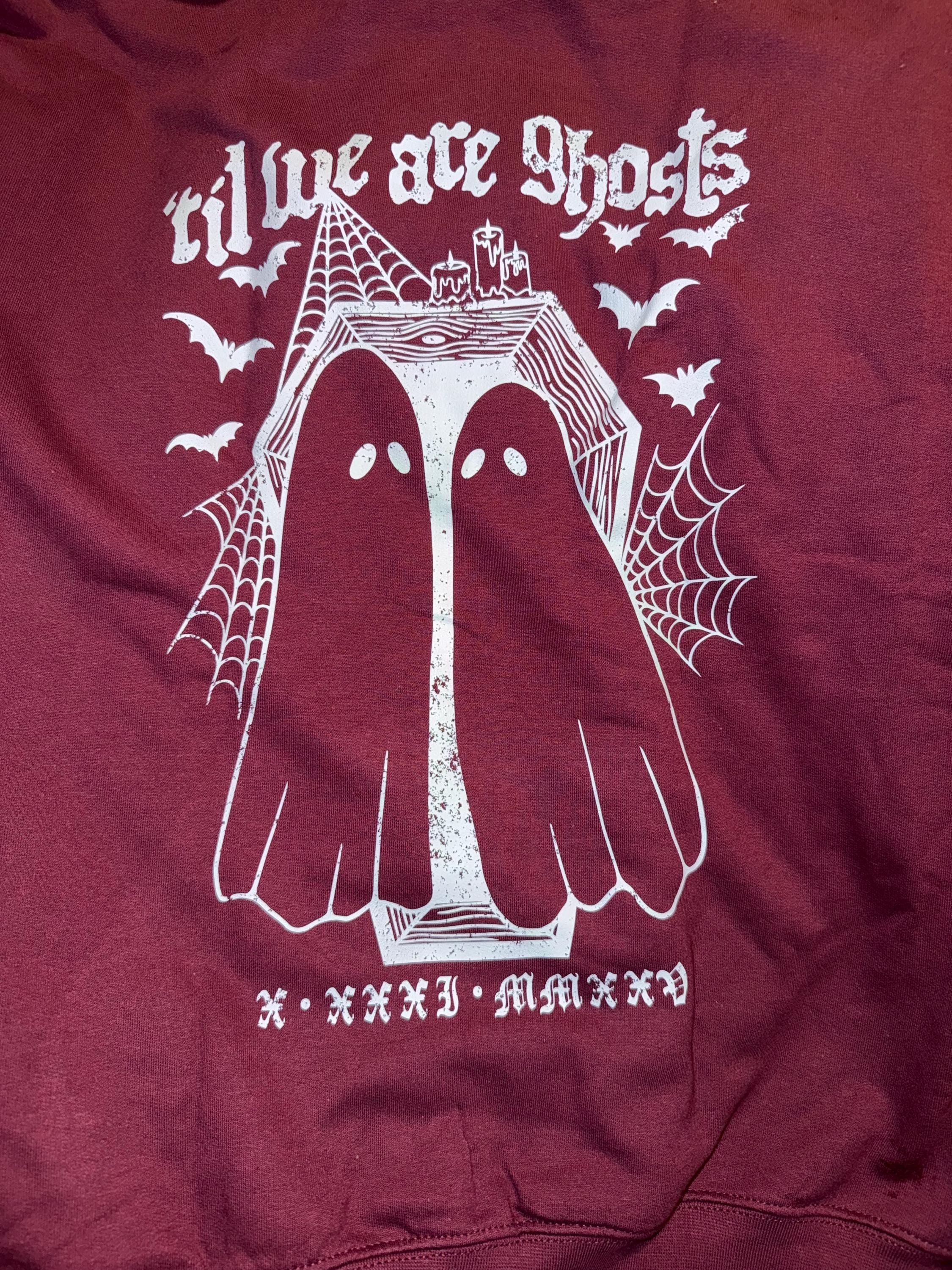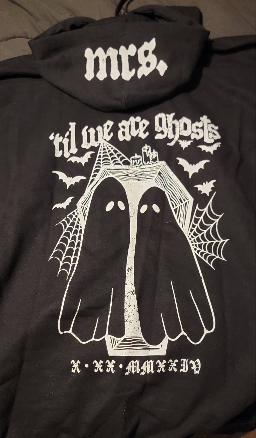 Embrace your inner goth and flaunt your unique bond with our ghost coffin design that scream "couple goals." From the mischievous spirits to the bone-chilling phrase "Til We Are Ghosts," these hoodies are the perfect fusion of spooky and sweet. So, whether you're strolling hand in bony hand at the pumpkin patch or enjoying a candlelit dinner in a haunted house, our matching sweatshirts will keep you in sync and in style!