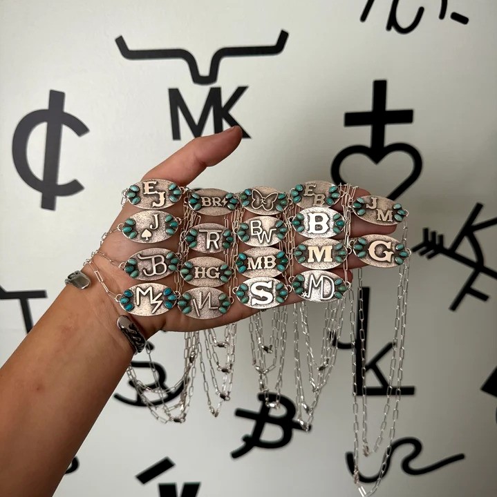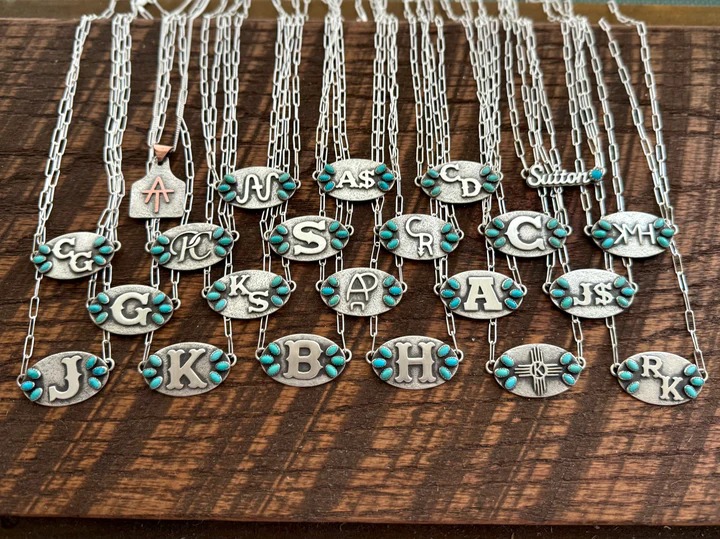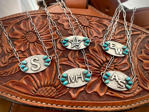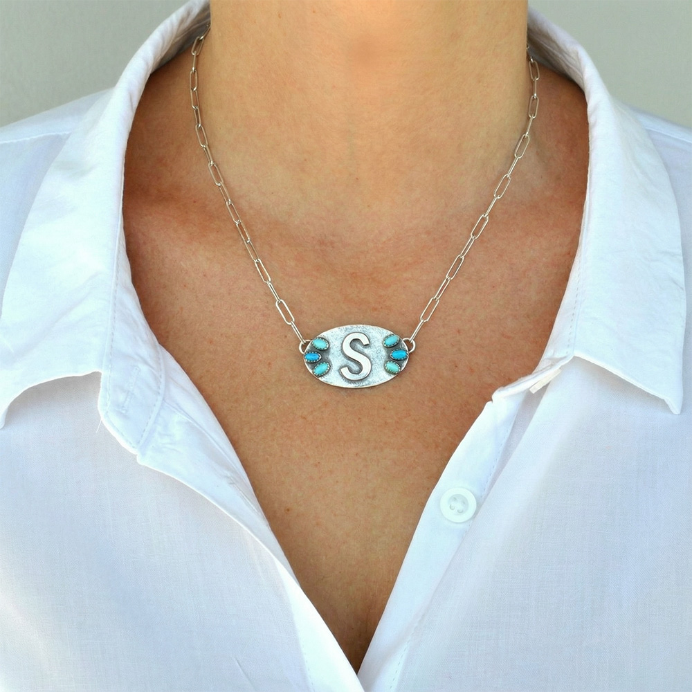 A handcrafted Brass/925sterling silver necklace made just for you! This necklace features 6 genuine turquoise stones and is mounted on a 16 inch adjustable sterling silver chain.
