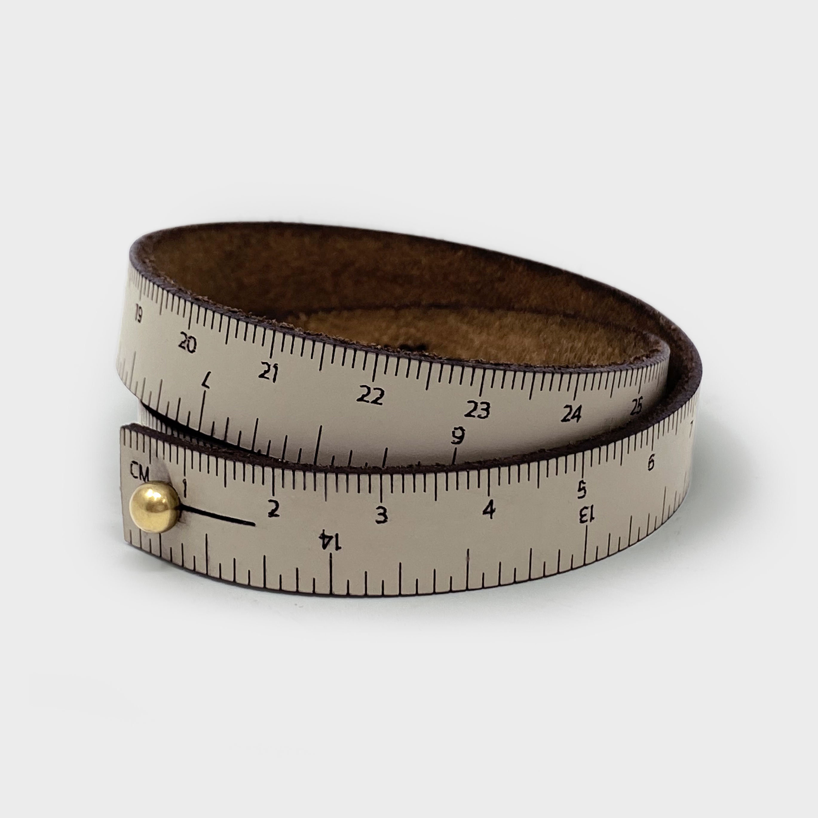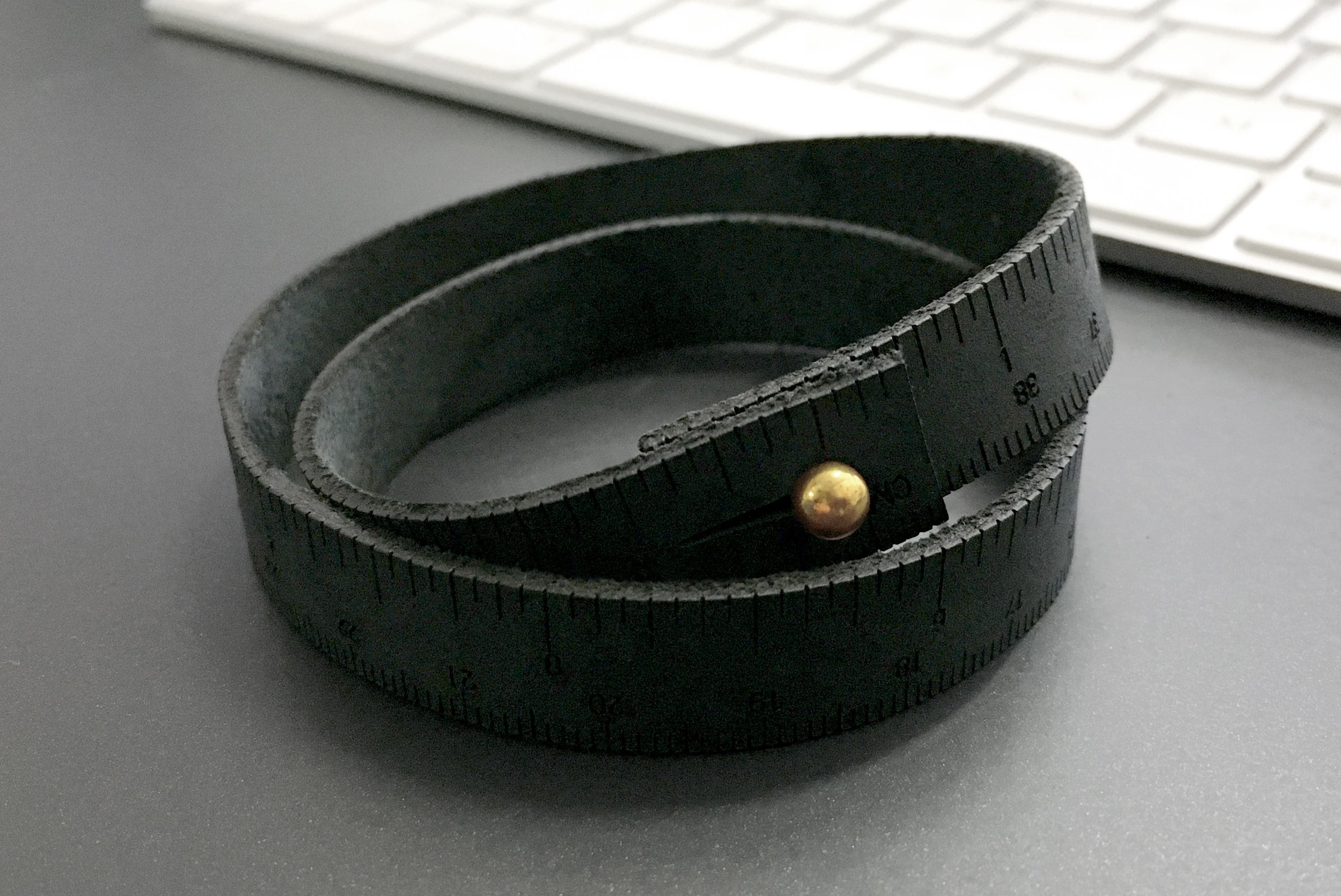 This is the original ruler bracelet. Wrist Ruler is a leather wristband with engraved inch and centimeter measurements. If you find yourself always needing to measure things when you’re on the go, this is the perfect product for you. Wrist Ruler is an absolute must-have accessory for knitting and sewing, but also makes an excellent every-day-carry accessory for anyone who often finds themselves looking for a ruler.