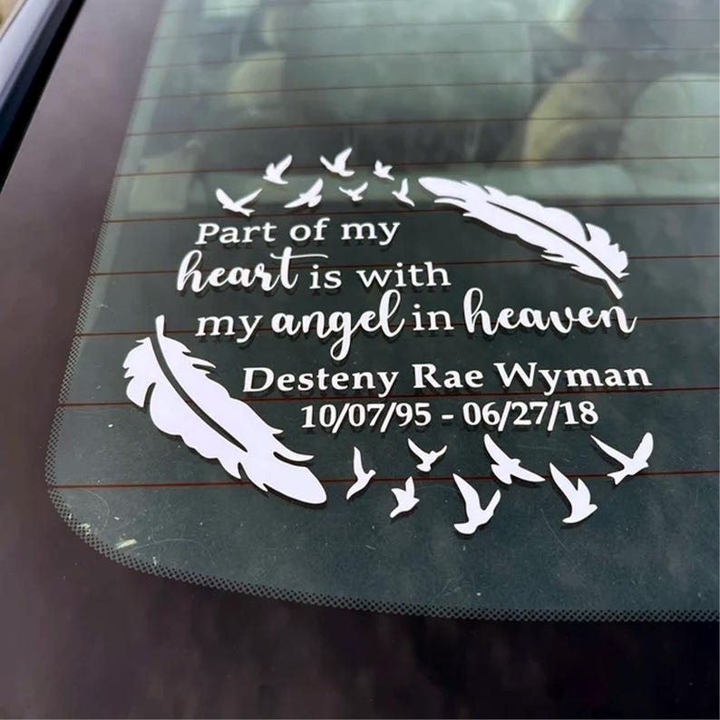 Unique design - This poignant memorial car decal is a heartfelt way to honor and remember a loved one who has passed away. Designed to provide comfort and solace, the decal's message acknowledges the pain of losing someone special while celebrating their eternal peace. The simple yet impactful wording conveys the bittersweet feelings of grief.
